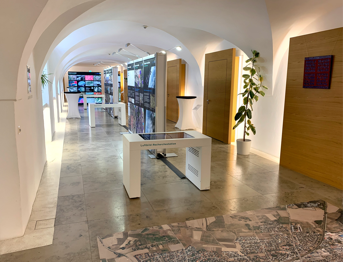 Die Ausstellungstafeln zeigen wie Luftbilder gemacht werden, wie sie aufbereitet werden und wo sie eingesetzt werden.
